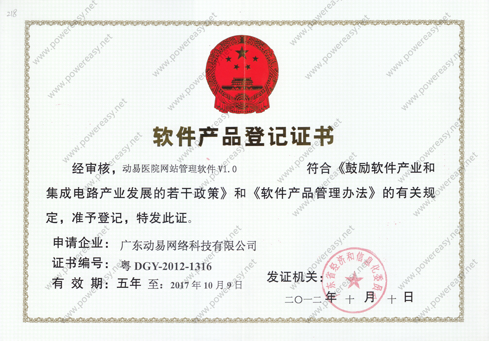 軟件產(chǎn)品登記-動(dòng)易醫(yī)院網(wǎng)站管理軟件V1.0