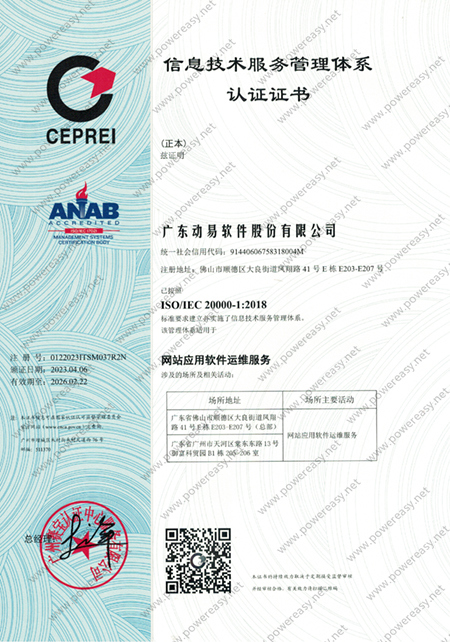 ISO 20000 信息技術(shù)服務(wù)管理體系證書(shū)