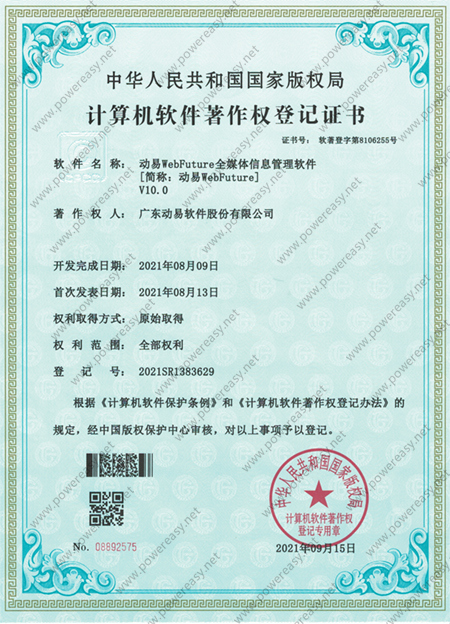 軟件著作權(quán)-動(dòng)易WebFuture全媒體信息管理軟件V10.0