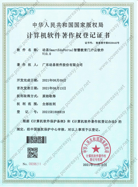 軟件著作權(quán)-動(dòng)易SmartEduPortal智慧教育門(mén)戶云軟件V10.0