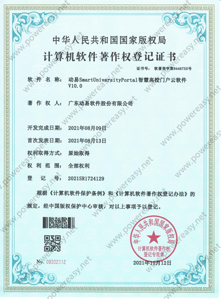 軟件著作權(quán)-動(dòng)易SmartUniversityPortal智慧高校門(mén)戶云軟件 V10.0