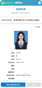 支持考生查看自己的報(bào)名表。報(bào)名表的上方,以進(jìn)度條的方式顯示報(bào)名表的當(dāng)前狀態(tài)、處理過程和結(jié)果。