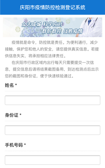 慶陽(yáng)疫情防控檢測(cè)登記系統(tǒng)啟用首日運(yùn)行順暢