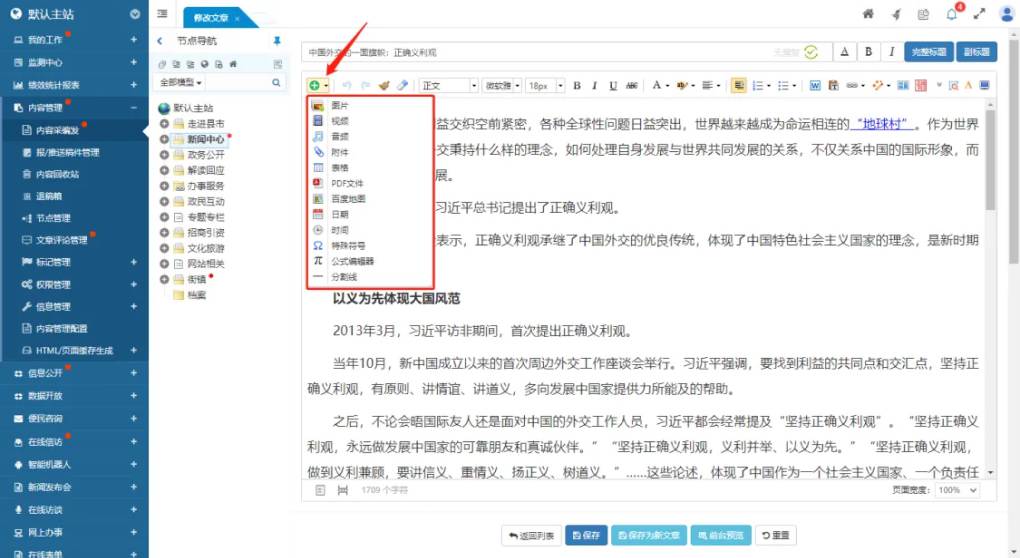 在線 HTML 編輯器是內(nèi)容管理系統(tǒng)的最核心功能之一,它采用與 Word 類似的可視化編輯方式,實現(xiàn)對文章內(nèi)容的“所見即所得”的在線編輯效果。