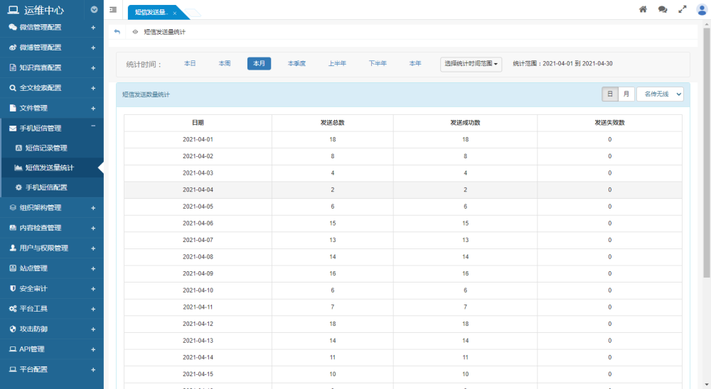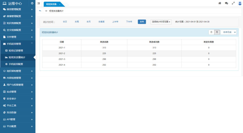 支持短信發(fā)送量統(tǒng)計功能
