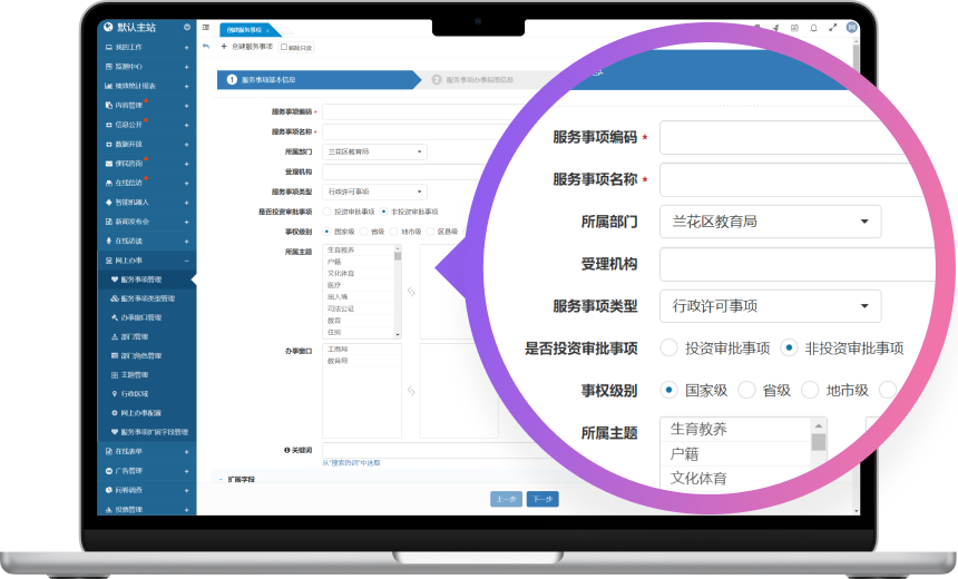 服務(wù)事項管理模塊功能全面且靈活,提供了豐富的操作選項以滿足不同管理需求。