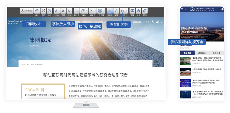 SmartCorporationPortal 是動(dòng)易基于 WebFuture 智慧門戶管理平臺(tái),為滿足大型國(guó)企、央企、集團(tuán)型企業(yè)的網(wǎng)站群集約化建設(shè)、信創(chuàng)適配、移動(dòng)適配、全媒體發(fā)布和監(jiān)測(cè)、無障礙改造和適老化建設(shè)等需求而量身定制的整套解決方案。