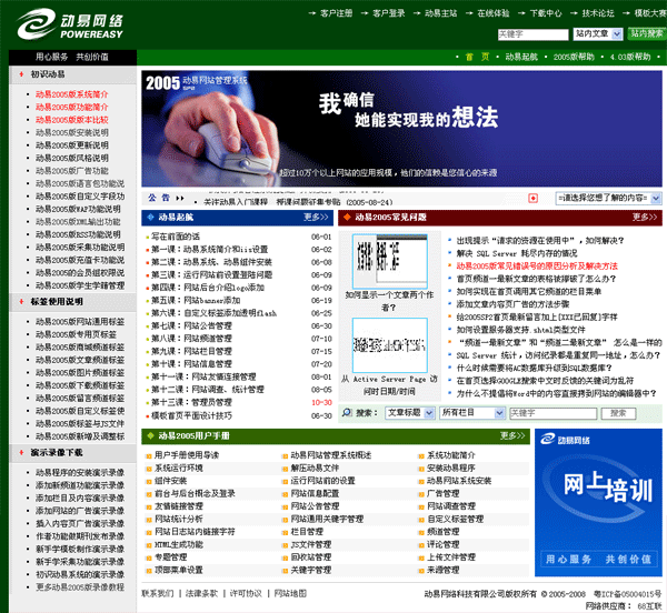 即日動易公司啟用全新調(diào)整的幫助中心網(wǎng)站,以逐步構(gòu)建動易公司網(wǎng)站群。改版后的幫助中心網(wǎng)站定位于對動易公司獨立開發(fā)所屬產(chǎn)品的全面說明與指導,全面涵蓋了動易系統(tǒng)說明及系統(tǒng)從架設、使用到運用等用戶手冊中的所有內(nèi)容及2005版的常見問題,以及以初學者的角度來編寫的動易2005版錄像演示教程的動易起航和4.03版幫助內(nèi)容。