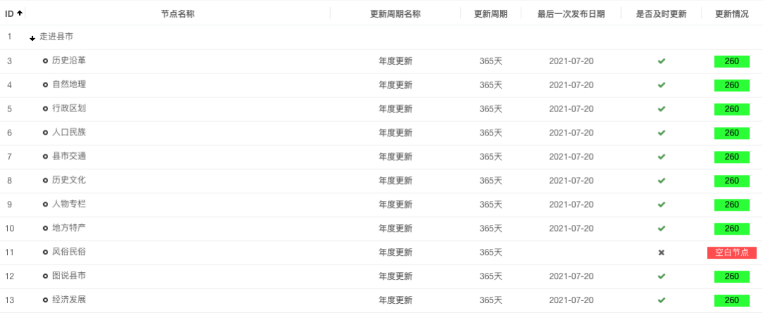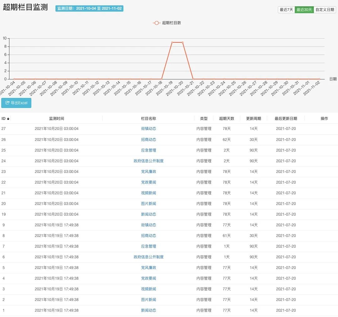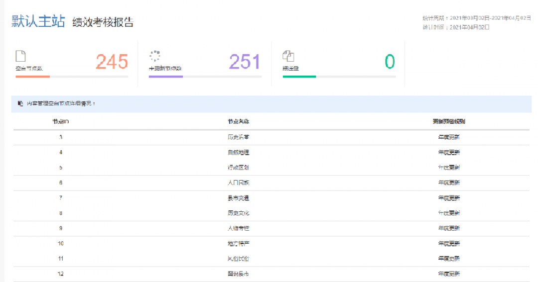 內(nèi)容更新預警具有主動提醒功能,系統(tǒng)會自動根據(jù)規(guī)則的周期判別信息是否及時更新。