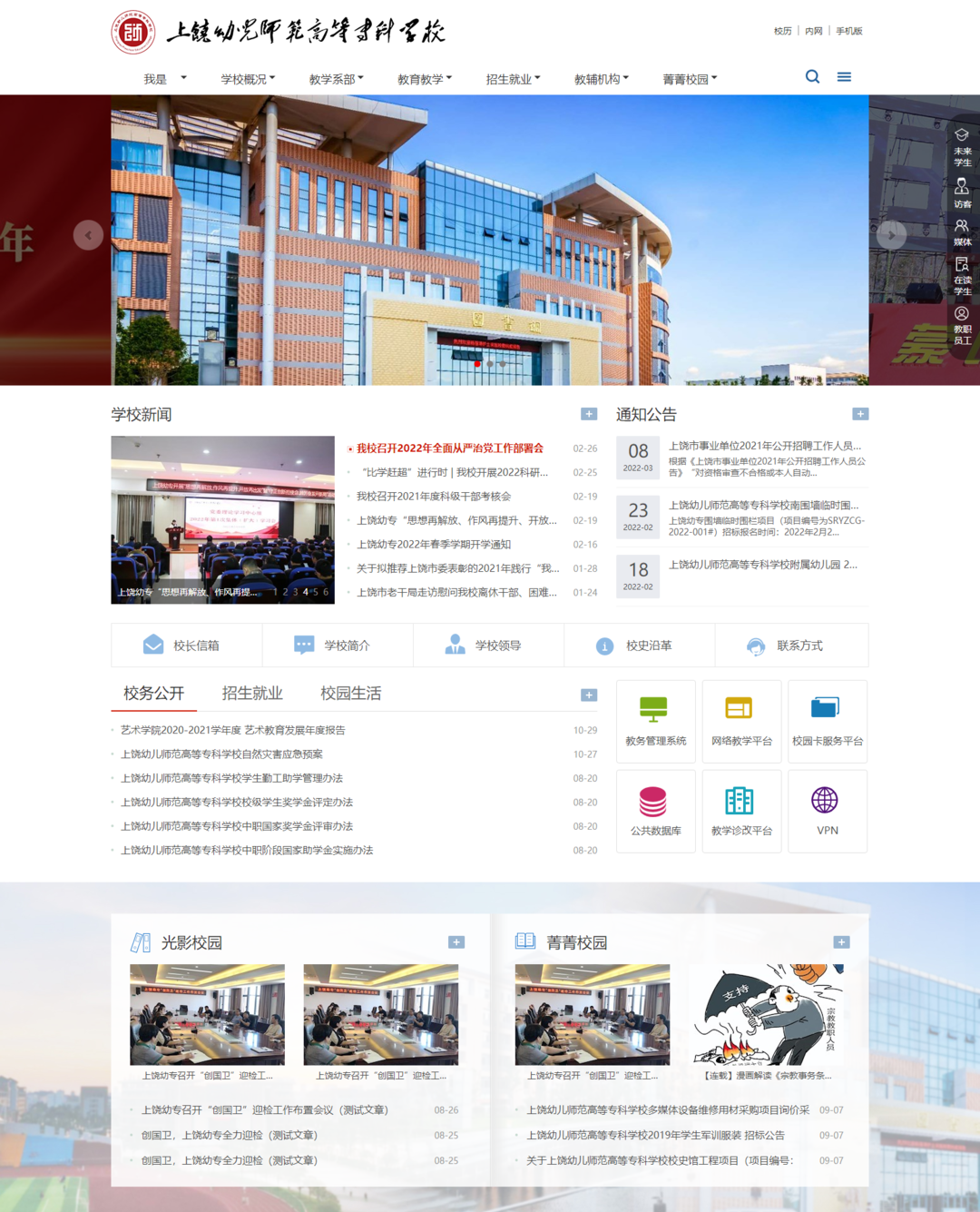 在職業(yè)教育數(shù)字化升級大背景下,上饒幼兒師范高等專科學院大力開展智慧校園建設工作,成功搭建數(shù)字化校園平臺。