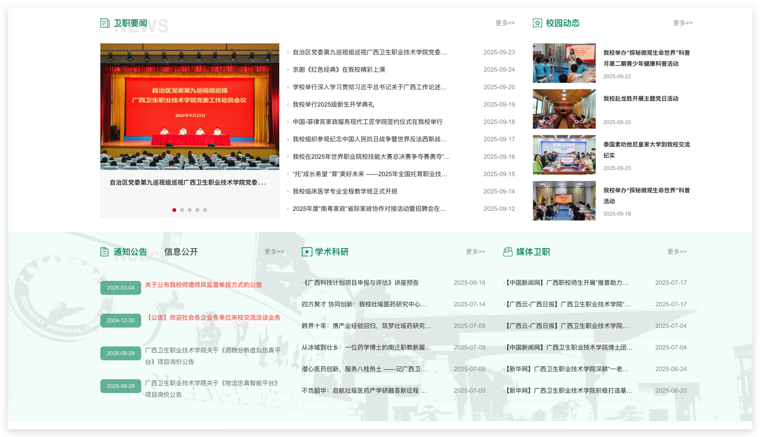 通過這些設(shè)計措施,廣西衛(wèi)生職業(yè)技術(shù)學院的網(wǎng)站群在視覺美感、品牌識別和交互便捷性上取得了良好的平衡。