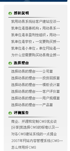 3、 標(biāo)簽的嵌套與復(fù)用。頂部、底部、左右側(cè)相同的部分都是調(diào)用某個標(biāo)簽來實現(xiàn)。而一個右側(cè)標(biāo)簽中又會同時再調(diào)用幾個列表標(biāo)簽來調(diào)用某些信息列表,如產(chǎn)品頁右側(cè)的“授權(quán)說明”、“選擇理由”、“評測報告”等。(圖4)