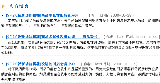 2、前臺各種列表標(biāo)簽效果的運用。如公司動態(tài)、官方博客、下載中心運用了不同的展示效果。(圖1、2、3)