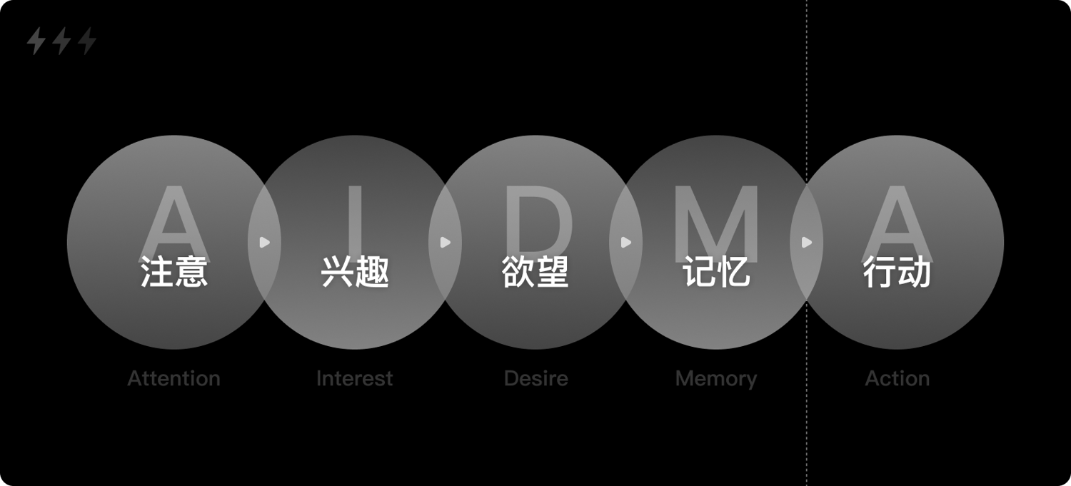 在上世紀漫長的時間里,營銷者通過電視、報紙、雜志等媒介,發(fā)布產(chǎn)品信息,刺激用戶發(fā)生購買行為,這段時間被稱為傳統(tǒng)大眾媒體的時代。1898年,美國廣告學家E-S-劉易斯提出了一個極具代表性的消費心理模式,AIDMA模型,勾勒出了消費者購買商品前的心理過程。消費者先是注意到商品及其廣告,并對商品發(fā)生興趣,從而產(chǎn)生需求欲望,最后是記憶以及采取購買行動。由于購買需在線下,甚至是指定地點,因此從記憶到行動的轉化路徑不具有連續(xù)性。
