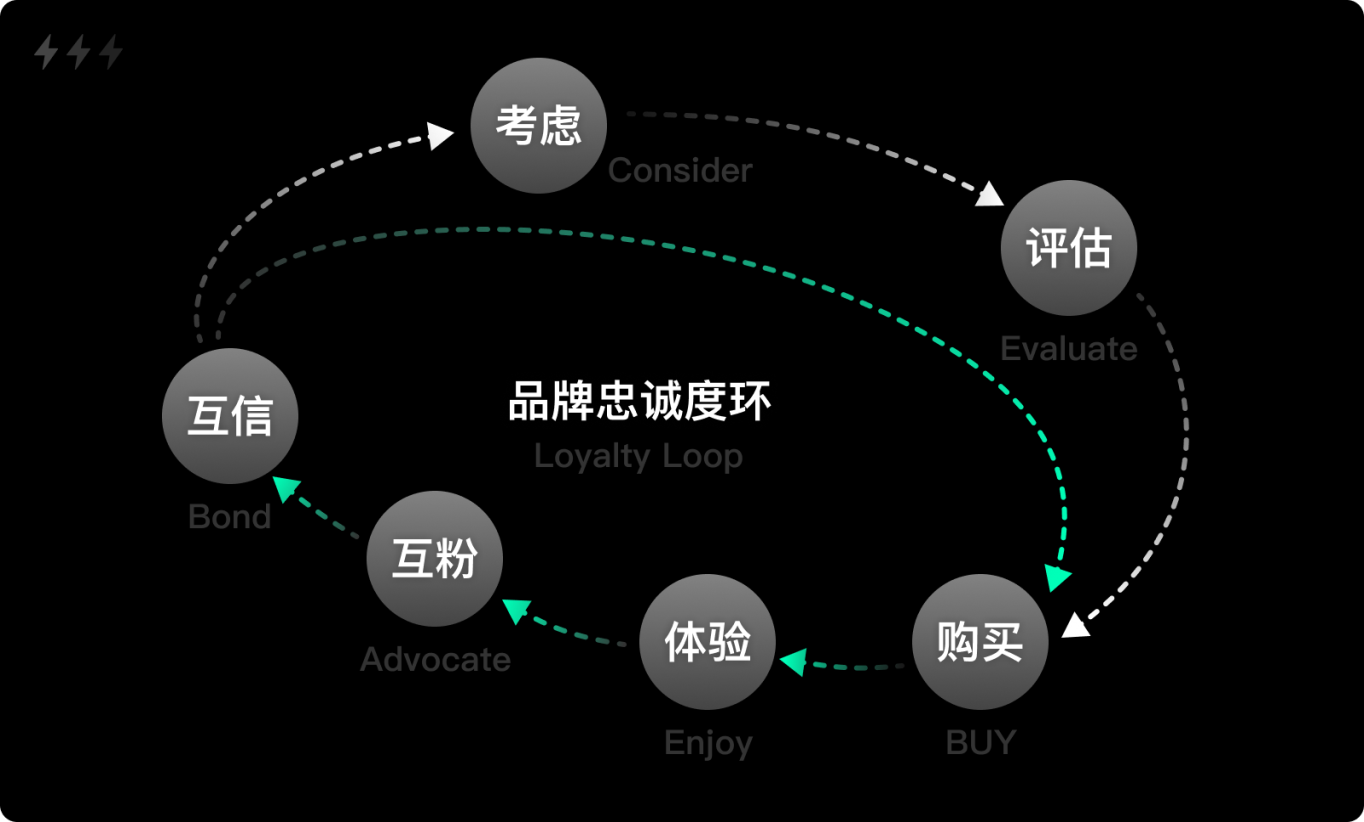 3. 忠誠路徑:對于已經(jīng)購買過的用戶,他們在產(chǎn)生需求后,通過搜索或其他方式快速訪問官網(wǎng),在已有信任感的驅使下,大概率會直接采取行動,跳過注意、興趣和決策階段。