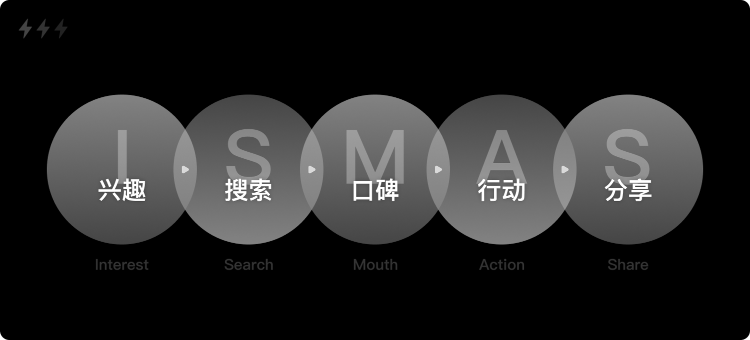 2013年,北京大學劉德寰教授基于AIDMA和AISAS提出了一個新的行為模型:ISMAS,該模型指向了移動互聯(lián)網(wǎng)時代的一個重要的購買行為變化:口碑。將營銷的首要任務從吸引注意轉變?yōu)楫a(chǎn)生興趣。