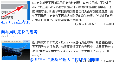 在Opera瀏覽器中瀏覽的效果中,標(biāo)題頂部缺少間距倒也說(shuō)得過(guò)去,至少?zèng)]影響頁(yè)面效果;Mozilla Firefox中瀏覽的效果中標(biāo)題、副標(biāo)題都擠得亂套了,說(shuō)明還有定義狐貍(Firefox)中要嚴(yán)格定義,耐心查查吧。
