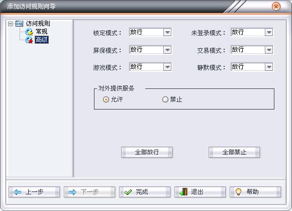 [3]在“高級(jí)”選項(xiàng)中的所有規(guī)則選擇“放行”。(如圖)