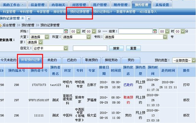 醫(yī)院可對預(yù)約信息進(jìn)行靈活處理,系統(tǒng)還提供對所有預(yù)約記錄歷史的按時間段查詢,并可將查詢記錄導(dǎo)出至EXCEL的功能,以方便對預(yù)約記錄的進(jìn)一步分析和管理。