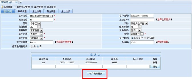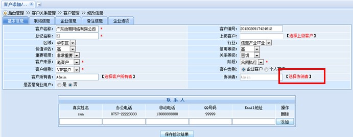 這樣,整個協(xié)銷的設置工作就成功完成了,2位銷售人員可以共同查看、修改此客戶的相關資料,齊心合力完成項目的銷售以及跟進工作。協(xié)銷功能的介紹就為大家介紹到這里,趕快來體驗一下吧!