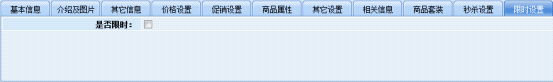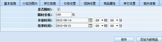 首先,進(jìn)入動(dòng)易BizIdea后臺(tái), 選擇某件“限時(shí)搶購(gòu)”的商品,開啟限時(shí)功能并設(shè)置屬性,如下圖: