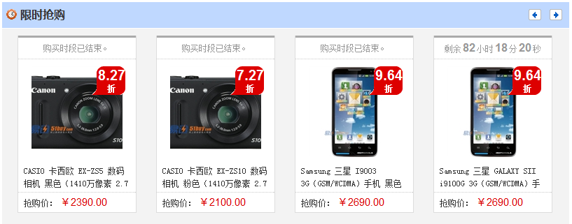 通過(guò)限時(shí)搶購(gòu),商家可以以定時(shí)降低利潤(rùn)的方式來(lái)實(shí)行促銷活動(dòng),從而提高銷售量,實(shí)現(xiàn)薄利多銷,最終提高所得利潤(rùn);同時(shí)限時(shí)搶購(gòu)會(huì)為您的網(wǎng)站打造好的口碑,聚集人氣,為網(wǎng)站的后續(xù)發(fā)展提供強(qiáng)有力的支持。