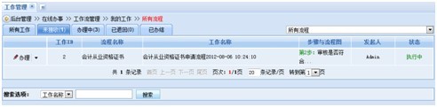 工作日志管理頁(yè)面可以顯示當(dāng)前用戶在工作辦理過(guò)程中的辦理操作記錄。使得每個(gè)工作的辦理記錄都有據(jù)可查。