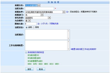 系統(tǒng)提供對(duì)流程進(jìn)行管理功能,可以對(duì)流程進(jìn)行添加、設(shè)計(jì)、禁用/批量禁用、修改、刪除/批量刪除、啟用/批量啟用等管理操作,根據(jù)申報(bào)審核需要進(jìn)行流程管理。