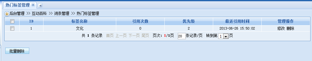 管理員可以添加熱門標(biāo)簽,表示近期搜索或引用的熱門標(biāo)簽,可用于前臺(tái)首頁或其他頁引用、導(dǎo)航等。