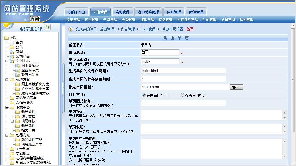動易CMS 2007的節(jié)點管理--單頁節(jié)點