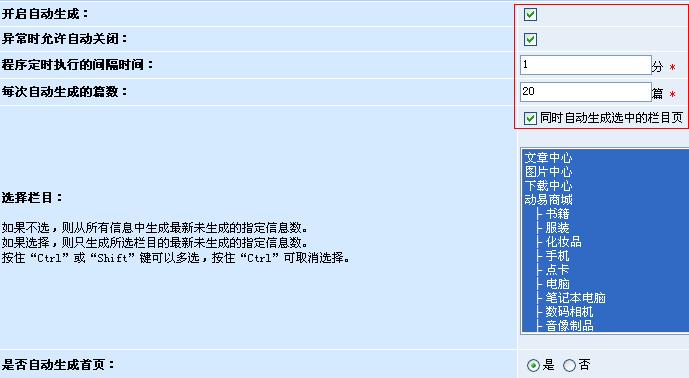 優(yōu)勢:是開啟自動生成后,每次更新完內(nèi)容后,只要設(shè)定在生成靜態(tài)頁的情況下,就可以自動生成靜態(tài)頁。