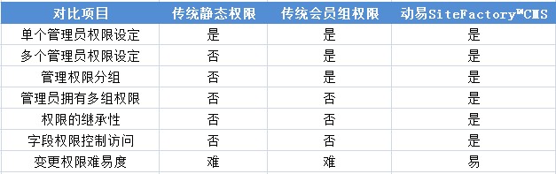 動易SiteFactory? CMS 正是一套以面向政府、事業(yè)單位、企業(yè)等領(lǐng)域為開發(fā)對象的企業(yè)級內(nèi)容管理系統(tǒng),它采用的就是基于標(biāo)準(zhǔn)RBAC模型(角色)的訪問控制方法。如下圖所示,傳統(tǒng)權(quán)限與動易SiteFactory? CMS角色的對比圖: