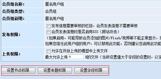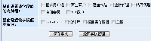 此途徑可以通過用戶管理中的“角色管理”和“會(huì)員組管理”來設(shè)置相應(yīng)的字段權(quán)限。先來看一下動(dòng)易SiteFactory? 新增加的“匿名投稿用戶組”的權(quán)限設(shè)置截圖: