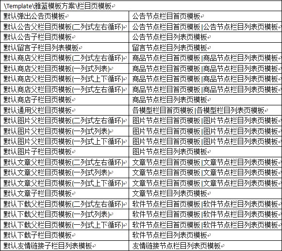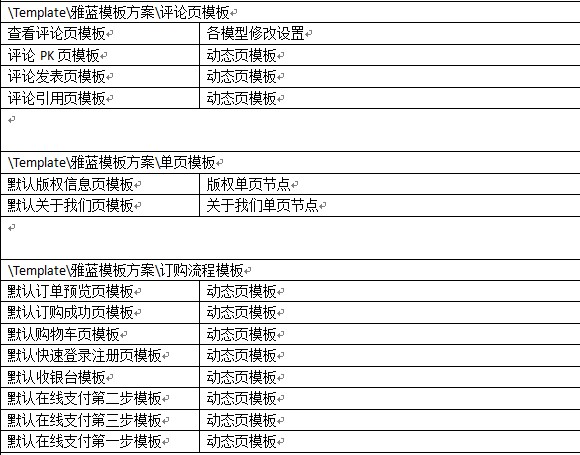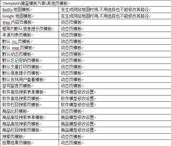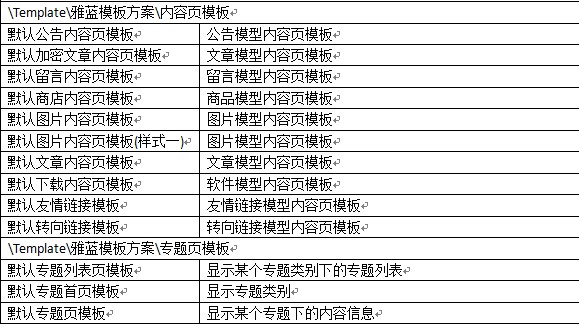 附默認(rèn)雅藍(lán)模板方案中各模板的使用說(shuō)明: