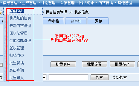 如果說SiteFactory™ 1.0的菜單是功能的改進,那么新版本的菜單將是便利性的改進。新版本將常用功能和拗口菜單名稱進行了添加和修改,更符合大家的操作習慣。比如,“信息管理”、“專題管理”兩個菜單,被“內(nèi)容管理”所取代,這樣更利于操作和理解。