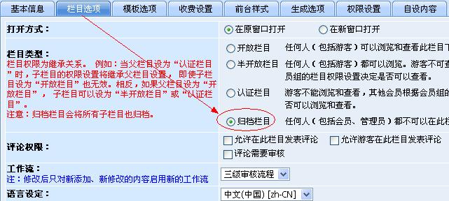 繼上一個版本增加信息歸檔功能后,SiteFactory? CMS 2.0 版本開始支持節(jié)點的歸檔,更加方便大批量信息的歸檔操作。歸檔欄目會將所有子欄目也歸檔。具體操作步驟是進(jìn)入“節(jié)點管理”,切換到“欄目選項”選項卡找到下圖所示處進(jìn)行節(jié)點歸檔: