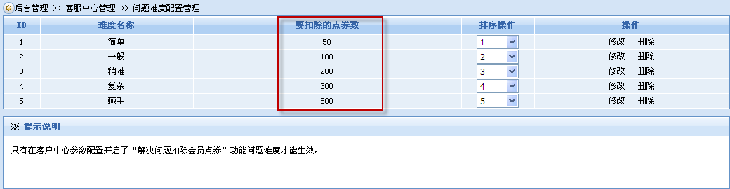 通過設置有償服務的運營模式(解決問題扣除會員點券的方式),企業(yè)可以在網站上開展有償?shù)氖召M客戶服務。企業(yè)可以讓客戶先行支付服務費用,然后給客戶用戶名添加相應金額的點券,待客戶問題解決后管理員再扣除一定的點券。并且可預先設置多個不同的問題難度,不同難度的問題扣除不同的點券數(shù)(如動易官方客服中心的解決問題后根據(jù)問題難度扣除一定數(shù)量的動易幣)。這樣就使得收費更為精確、合理,可以更好地提供收費客戶服務,也更好地提高了客戶滿意度。