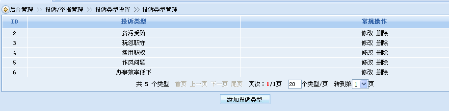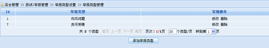 投訴/舉報系統(tǒng)可以自定義舉報\投訴的類別,如貪污受賄、玩忽職守、濫用職權(quán)、民生問題、環(huán)境問題等舉報/投訴類別。