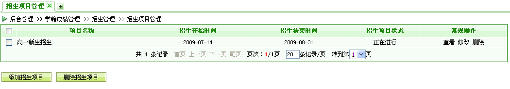 學(xué)校管理員可以在后臺(tái)方便添加學(xué)校的各項(xiàng)招生信息: