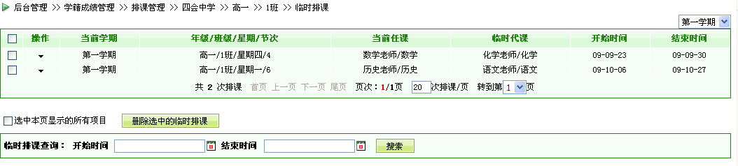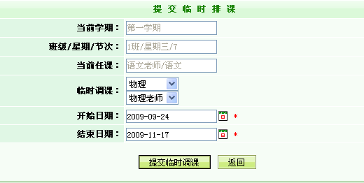 在后臺某個班級的課程表中,我們可以點擊所需要進(jìn)行調(diào)課的節(jié)次進(jìn)行臨時排課: