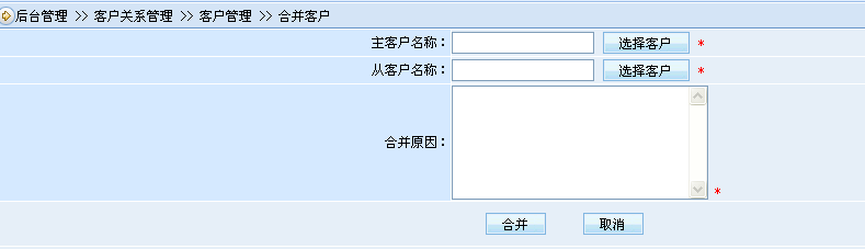 在企業(yè)客服人員眾多的情況下,極有可能會(huì)出現(xiàn)多個(gè)客服人員聯(lián)系同一個(gè)客戶的情況,如果在客戶聯(lián)系前期對(duì)客戶的資料了解得不夠清楚,便會(huì)導(dǎo)致多個(gè)客服錄入了多個(gè)客戶、但最后卻發(fā)現(xiàn)這多個(gè)客戶均為同一個(gè)客戶的后果(如客戶方A聯(lián)系人聯(lián)系的是A客服,B聯(lián)系人聯(lián)系了B客服)。在這樣的情況下,便需要將多個(gè)客戶信息合并為一個(gè)。合并后,之前多個(gè)客戶的聯(lián)系記錄、訂單信息機(jī)資金明細(xì)等均會(huì)匯集到一個(gè)客戶下。