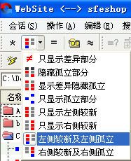 這時候,界面里顯示出的文件列表太多了,不便于我們查看要更新的部分,我們可以通過點(diǎn)擊下圖所示的這個按鈕,只顯示左邊較新的有差異的或孤立的文件,也就是更新包里的新增文件與更新修改過的文件。