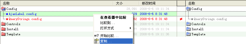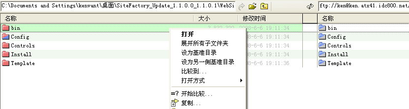 接著就是進(jìn)行網(wǎng)站更新操作了。對于Admin、Controls、Install、Bin等文件夾,我們可執(zhí)行復(fù)制命令,將這幾個文件夾里的文件直接覆蓋ftp里的相應(yīng)文件。執(zhí)行辦法是,在左側(cè)的文件夾點(diǎn)右鍵,彈出菜單中選擇復(fù)制。復(fù)制完成后,左側(cè)的紅色文件夾圖標(biāo)變?yōu)榛疑?,表示已更新?nbsp;
